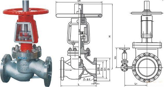 JYK表示无旁通,带副阀瓣氧气截止阀